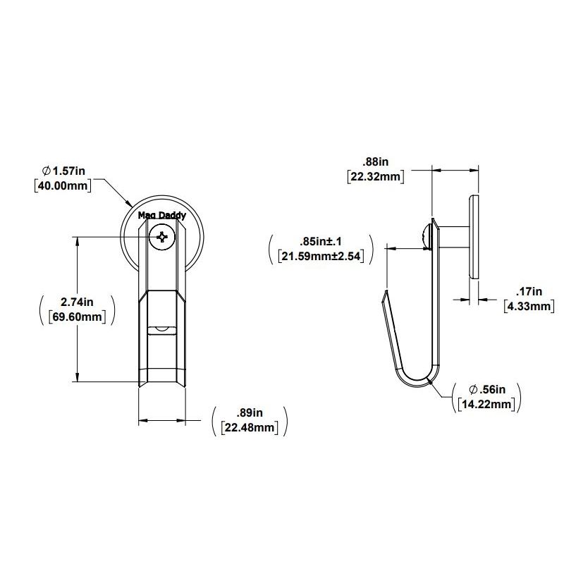 The Mag Daddy 3/4" Magnetic J-Hook (Side-Mounted) provides a strong and versatile solution for securely hanging cables, hoses, tools, and more. Equipped with neodymium magnets capable of holding 40 kg, this hook attaches firmly to ferrous surfaces without drilling or adhesives.